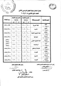 اعتمد الدكتور طارق شوقي، وزير التربية والتعليم والتعليم الفني، جدول امتحانات نهاية الفصل الدراسي الثاني للصف الأول الثانوي للعام الدراسي الحالي 2019/2018، متمنيا النجاح والتوفيق لجميع الطلاب المتقدمين لأداء الامتحان هذا العام.