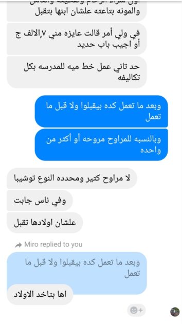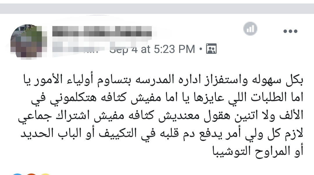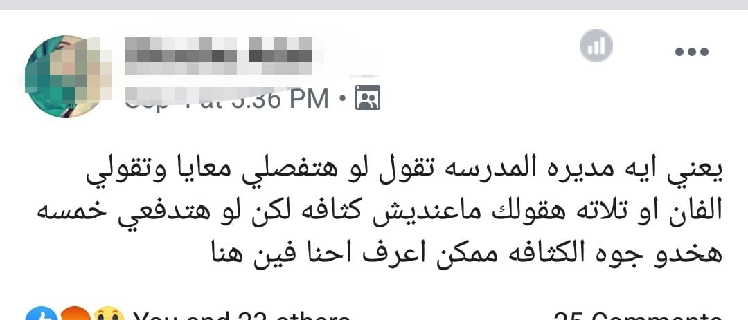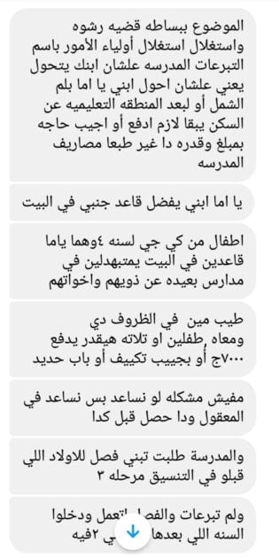 “الموضوع ببساطه كله تحت مسمى الرشوه و استغلال أولياء الأمور باسم التبرعات المدرسيه
