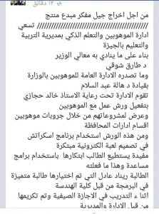 إبلاغ كل ما هو جديد من معالي الوزير واستكمال ورش العمل مثل المنصة التعليمية