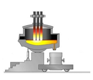 سابقا كان استخدام أفران القوس الكهربائي هي المعيار لصهر الصلب ومعالجته . حيث تكون افران القوس الكهربي ذات سعة تصميميه عالية وتنتج ما يزيد عن 100 طن في الساعة. ، كما ان لها القدره علي التعامل مع خردة ذات ابعاد كبيرة وأقل تكلفة .