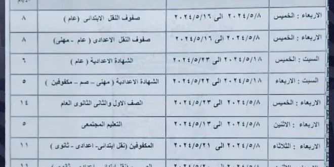 جدول امتحانات الصف الدراسي الثاني محافظه الاسكندريه