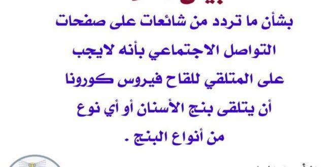 كتب هانى سلام : نشرت نقابه أطباء أسنان إسكندرية بيان هام بشأن ما تردد عن موت مؤكد لمن يأخذ بنج موضعى بعد لقاح كورونا. [the_ad id=”11519″] نقابة أطباء أسنان اسكندرية بيان هام ترددت على صفحات التواصل الاجتماعي شائعة تفيد بأنه لايجب على المتلقي للقاح فيروس كورونا أن يتلقى بنج الأسنان …