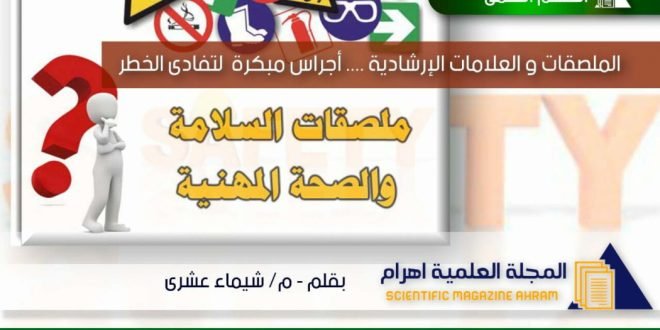الملصقات و العلامات الإرشادية …. أجراس مبكرة لتفادى الخطر بقلم/ م. شيماء عشرى اخصائى سلامة وصحة مهنية العلامات و الإرشادات لغة صامتة لكنها مباشرة جدا ومفهومة و تنتشر في كل مكان حولنا داخل هذا الكون ،وهى أبسط لغة يمكنك بها عزيزى القارئ أن توصل معلومة ما أو تنبه لخطر …